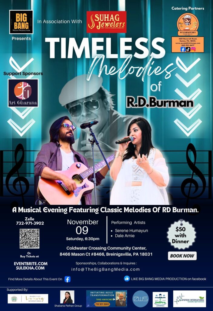 Serene has performed at numerous Bollywood musical shows and cultural events across New Jersey and Pennsylvania, as well as at private functions in New York. Her versatility allows her to move seamlessly from intimate mehfils to grand stage productions. She understands her audience, reads the room, and creates moments that feel personal and memorable.